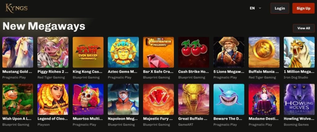 • Kyngs Casino kombiniert große Spielauswahl, starke Boni und schnelle Zahlungen auf einer modernen, sicheren Plattform.