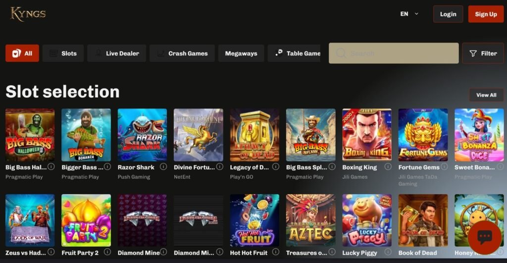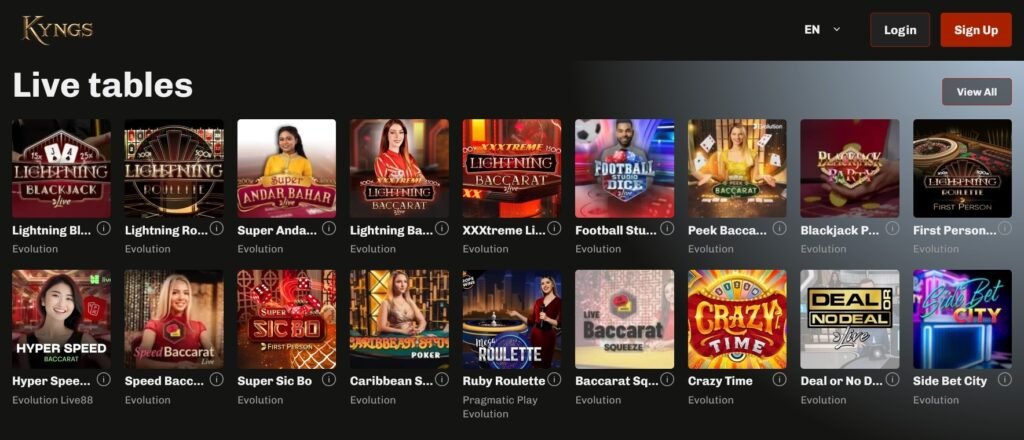 La oferta de juegos representa uno de los mayores atractivos de Kyngs Casino. La plataforma incluye desde tragamonedas temáticas hasta juegos de mesa clásicos, además de una amplia selección de títulos en vivo. Los usuarios pueden elegir entre distintas alternativas según preferencias personales o nivel de riesgo deseado.
