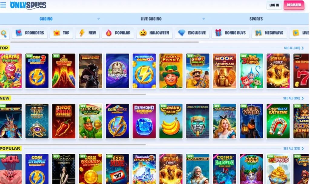 Con casi 10 000 alternativas entre tragamonedas, ruletas, mesas de casino en vivo y apuestas deportivas, OnlySpins reúne títulos de más de cien estudios internacionales. Esta amplitud cubre formatos clásicos y lanzamientos recientes con altos estándares visuales y funcionales, asegurando entretenimiento constante para todo tipo de jugador.
